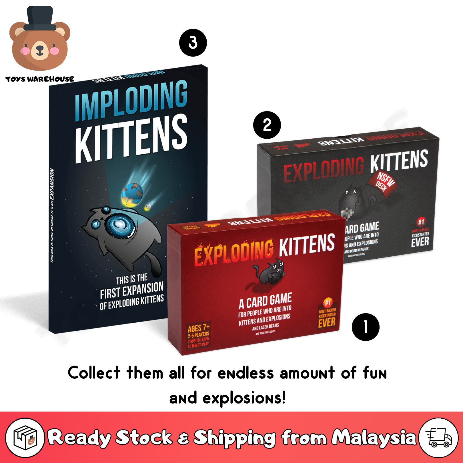 Imploding kittens is not a stand alone game and can only be played in conjunction with another edition of exploding kittens or exploding kittens nsfw. The recommendation at the box is for people above 30 but this game can be played by at least 18y o. Customers also shopped for. You play a defuse card which will stop the kitten from exploding using things like laser pointers kitten yoga and catnip sandwiches.